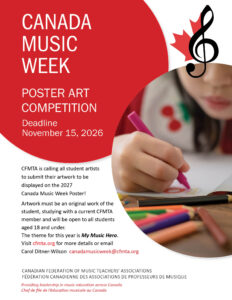 CFMTA is calling all student artists to submit their artwork to be displayed on the 2027 Canada Music Week Poster!